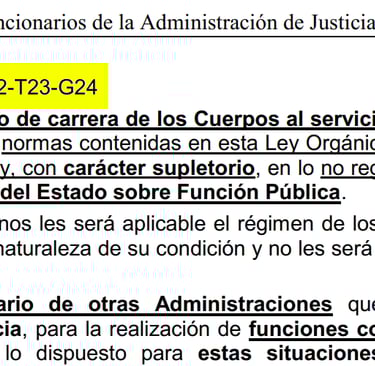 La LETRA indica el CUERPO, y los DÍGITOS el año en que ha caído la pregunta. ejemplo, A02 sería AUXILIO JUDICIAL del año 2002, T09 Tramitación Procesal año 2009, G24 Procesal del año202. Esta información se basa en la repetición de artículos de los TEST OFICIALES, alcanzando como mínimo el 80%, y en los PRÁCTICOS el 99%.